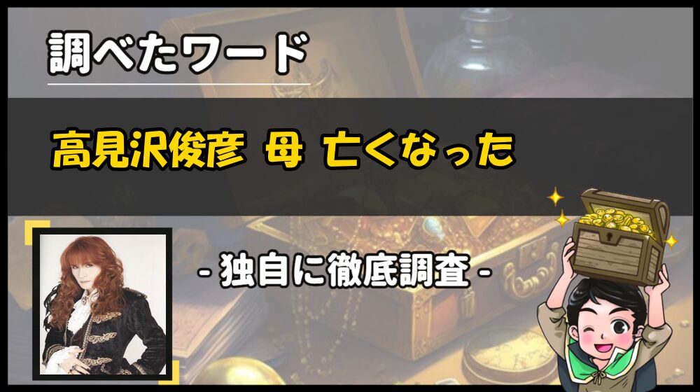 「 高見沢俊彦 母 亡くなった 」と関連ワードに表示され、検索する方が多いようです。
